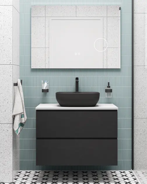 kielle Idolio -saniteettikeramiikka on saatavana valkoisena, mutta myös vaikuttavana antrasiitin sävyssä. Yhdessä kylpyhuonekalusteiden (kolme pintavaihtoehtoa) kanssa se luo visuaalisesti vaikuttavan tunnelman, jossa painotetaan myös käytännöllisyyttä. Saatavilla on eri kokoisia ja malleja olevia allaskaappeja, seinäkaappeja sekä erillinen allastaso. kielle Idolio -peilit (pyöreät ja kulmikkaat) tarjoavat LED-valaistuksen sekä sumunpoisto- ja himmennystoiminnon.